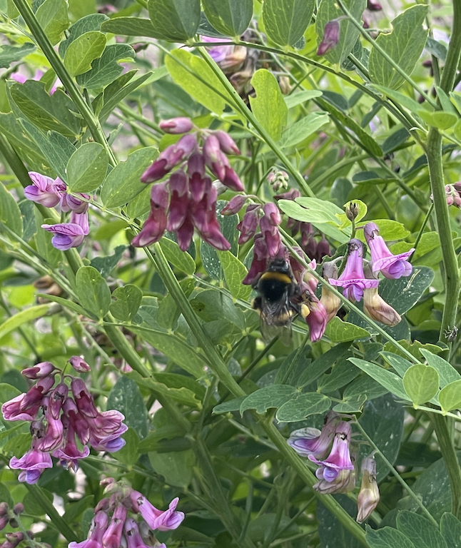 Deze inheemse vaste pronkerwt is een prachtige tuinplant met sierlijk groen blad waartussen rozerode bloemen verschijnen.